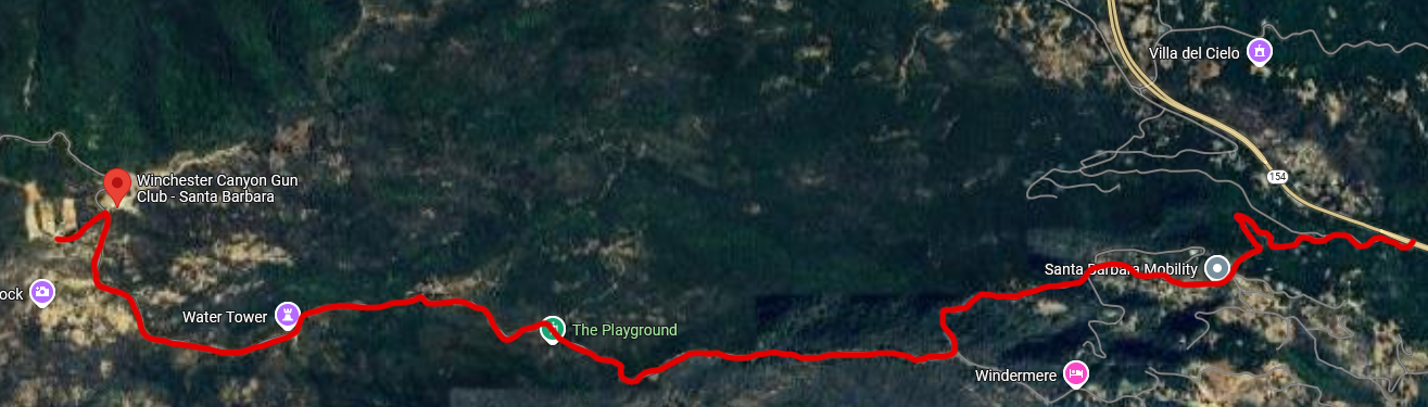 Take Highway 154 to West Camino Cielo, follow West Camino Cielo until you see range sign on left